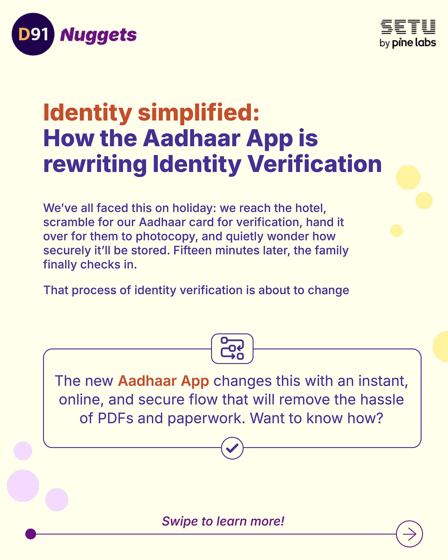 Here’s a familiar situation we all face on our holidays. Just when we reach the hotel reception, we scramble to find and submit our Aadhaar card for verification. Sometimes, we are also a little wary of whether the photocopy will be stored securely. We nevertheless share it and wait to check in. This process takes about 15 minutes for the entire family to check into the hotel.