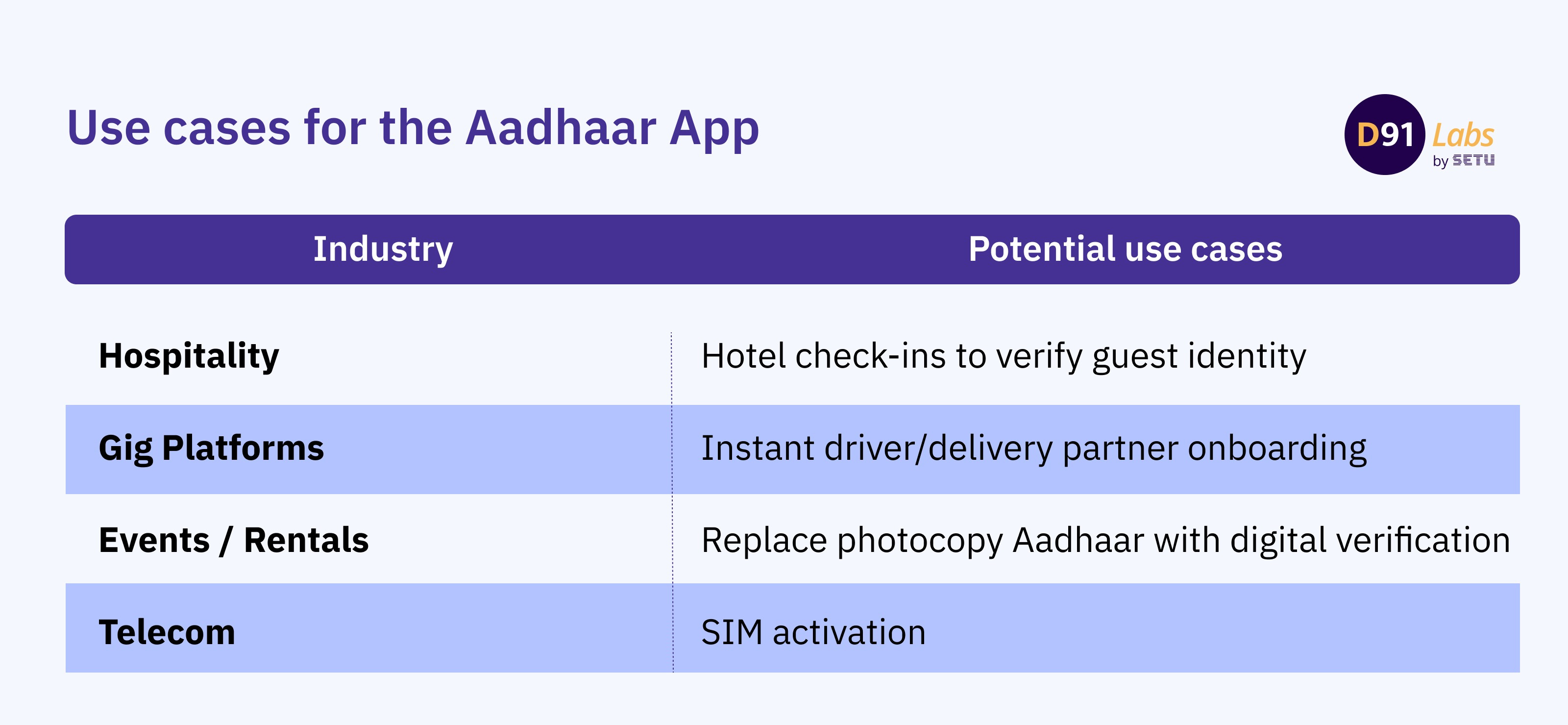 The Aadhaar App enables a wide range of use cases across sectors. Here are some of the key sectors with potential for high uptake of the Aadhaar App for identity verification: