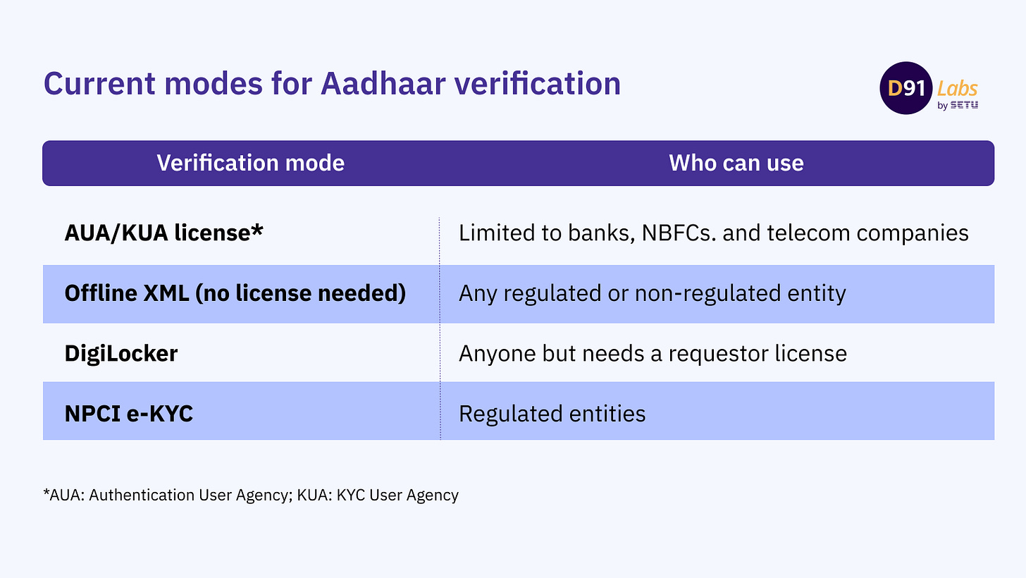 Businesses currently have four ways to verify Aadhaar data, with some modes limited to a few entities and often facing friction and high compliance costs:
