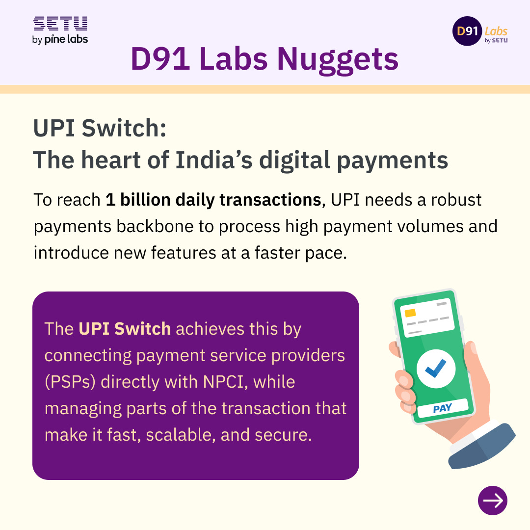 The UPI switch is a critical part of the payment infrastructure that is built for scale to support future UPI growth. Several PSPs have developed UPI PSP switches that ensure high success rates for UPI transactions.2